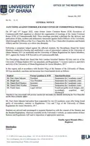 “Following a complaint lodged against the affected students, the Disciplinary Board for Junior Members conducted a hearing and established a case of misconduct contrary to the University of Ghana Statutes 2011 (as amended) and the University of Ghana Regulations for Junior Members, 2017, against the former JCR Executives of the Commonwealth Hall,” the statement announcing their suspension read.