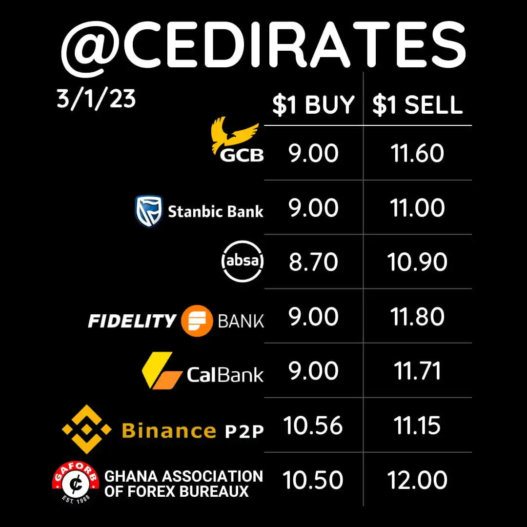 However, the rates by Afriswap Forex Bureau are GHS11.00 as buying rate and GHS12.00 as the selling rate.