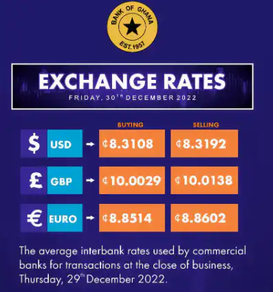 BANK OF GHANA INTERBANK RATES FOR THE THREE MAJOR TRADING CURRENCIES – 30TH DECEMBER, 2022