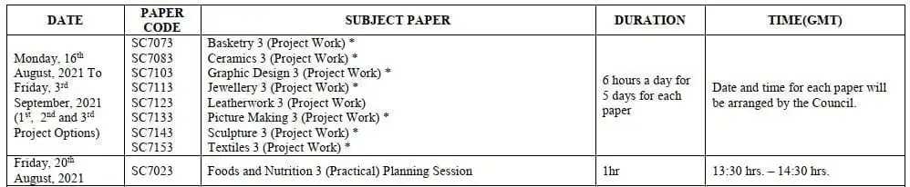 The WASSCE 2021 starts today with practicals of various subjects. The first batch of practicals start today 16th August and are expected to be completed and submitted on 3rd September. Visual Arts students offering Basketry, Ceramics among others are captured on the WASSCE 2021 timetable for school candidates for these practicals.